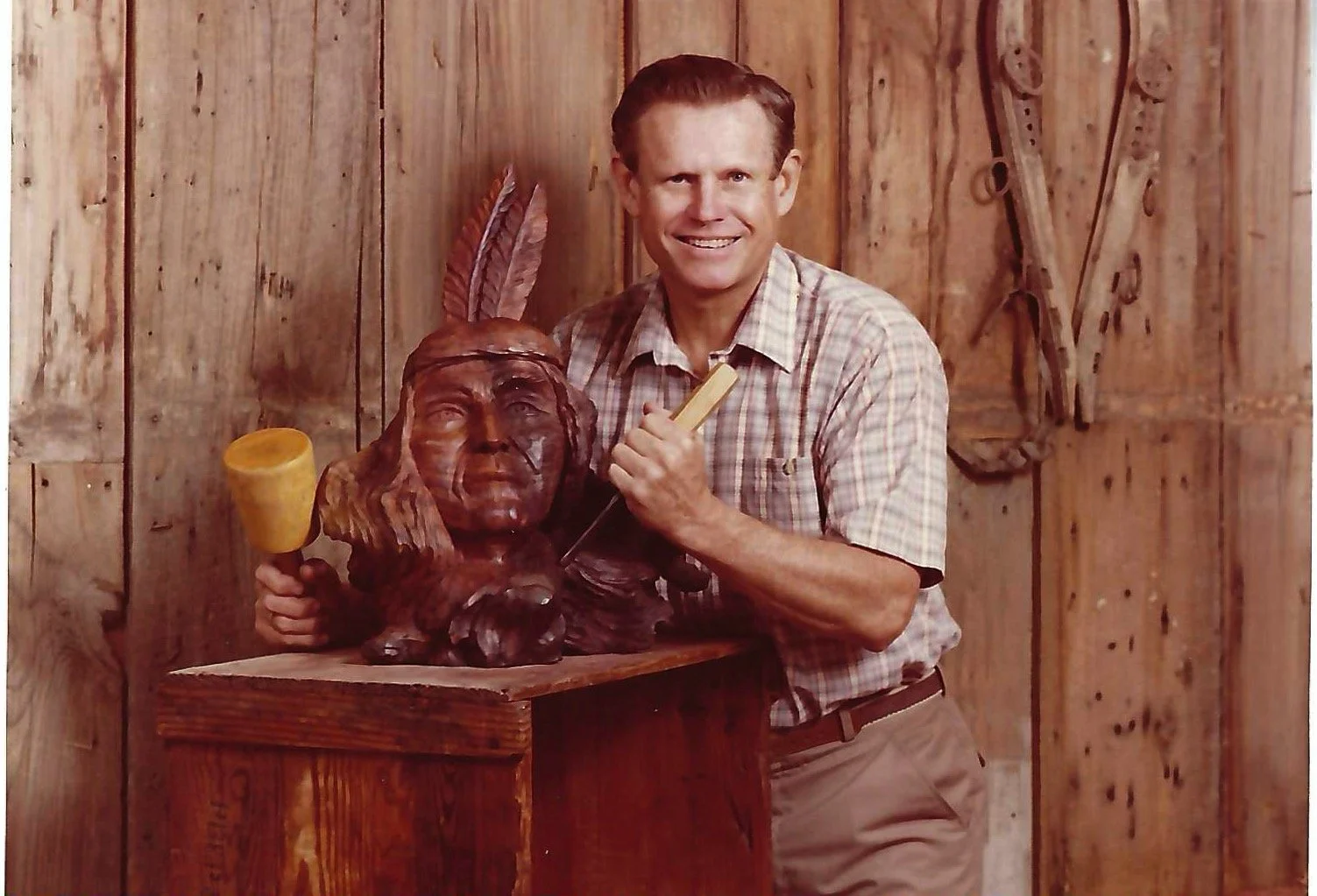 Austin would be home for the next 21 years. Charlie enjoyed his years coaching football and baseball at Travis High School before changing to administration at Porter Jr. High and Crockett High School. It was during this time that Charlie discovered he had a talent for and love of wood sculpture. As he began to see art as a second career, several things happened to further this plan. He inherited an historic family farm in Burleson, TX and was hired as principal of Burleson High School. At age 52, Charlie embarked on the adventure of his life. Now living on a farm and having taken early retirement from the school business, he was free to follow his dream. He sought out the master carvers in Bavaria, England, Canada and the USA. As he studied with them, he was gradually developing his own style, a harmony of wood and artistry.